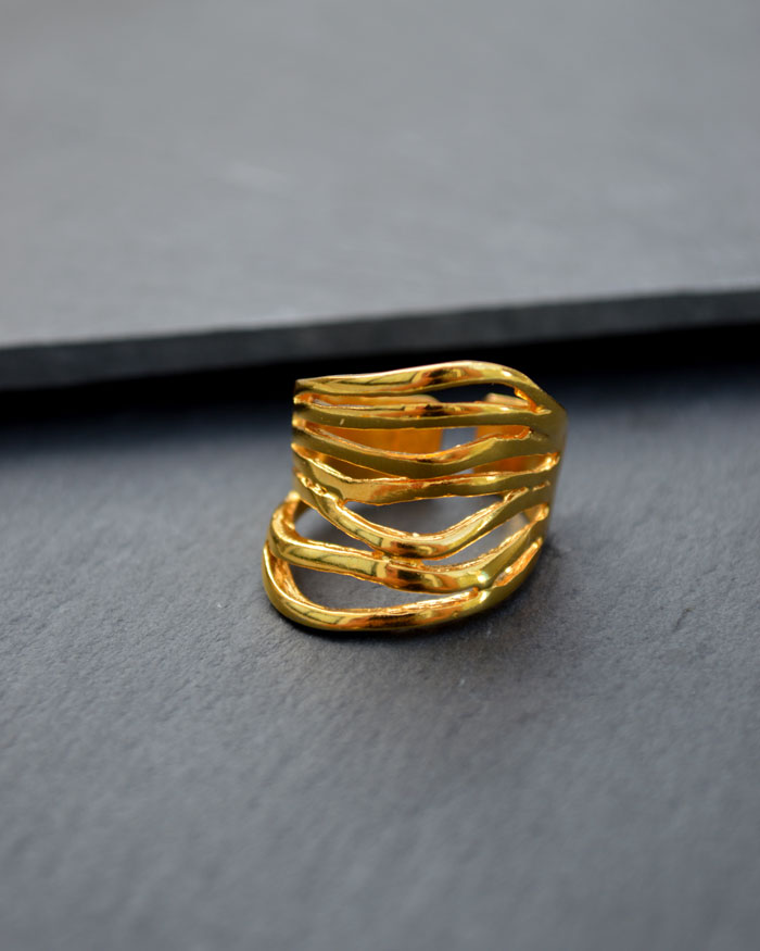 – Matériau : Laiton avec plaquage doré. Cette bague est disponible en Laiton Argenté, Laiton Doré et Argent 925. Découvre les différences entre les matériaux ici.
