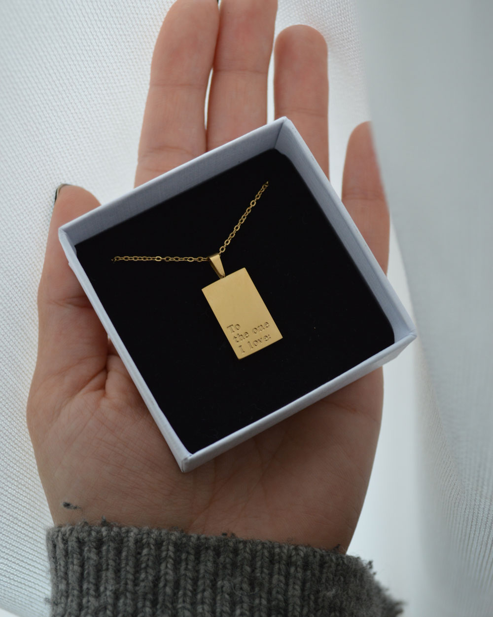 – Comprend : un collier avec la phrase “To The One I Love”.